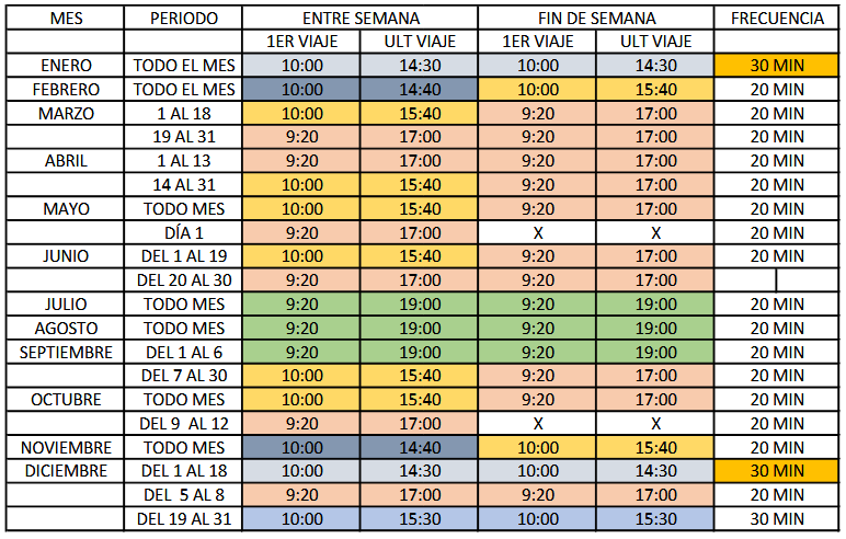 • Cada 20 minutos, con ampliaciones en marzo-abril y junio desde las 9:20h.